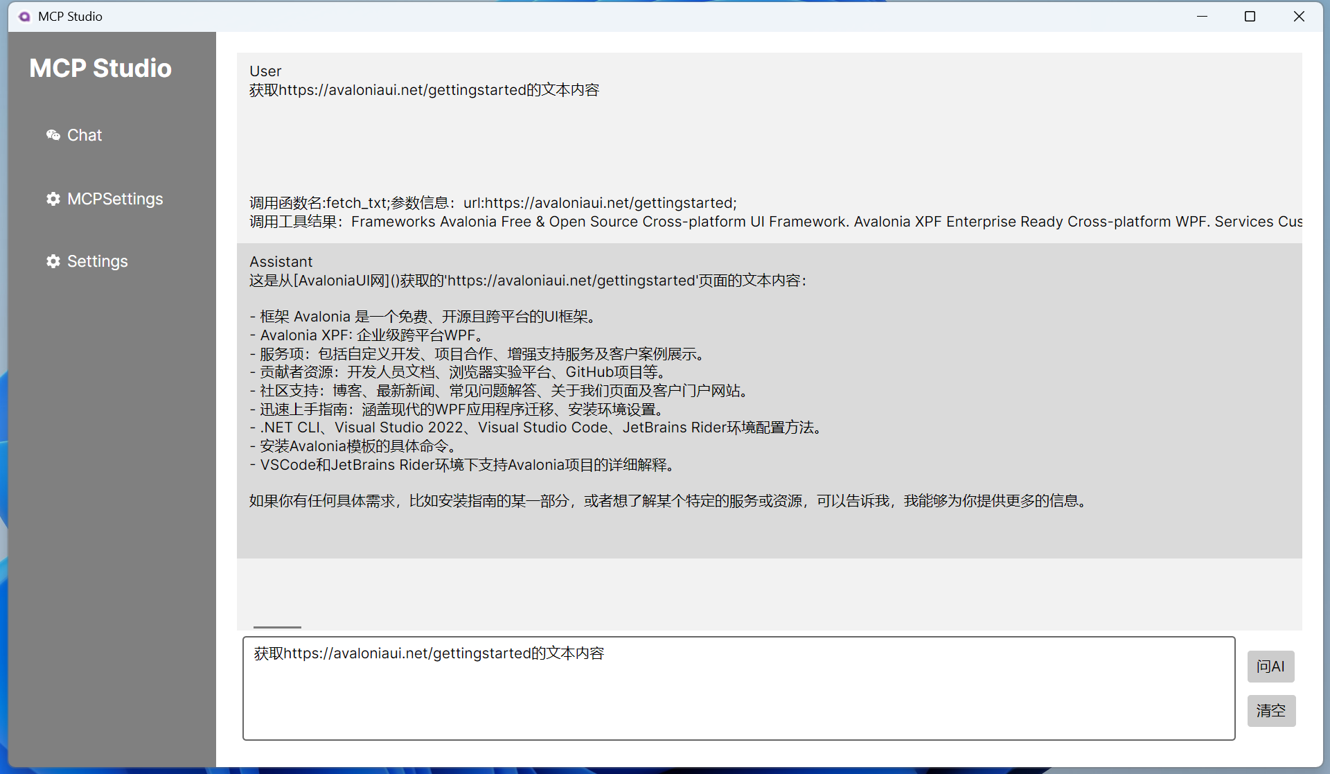 Recently, I've been learning Avalonia, so I wanted to use Avalonia to implement a simple cross-platform MCP client.