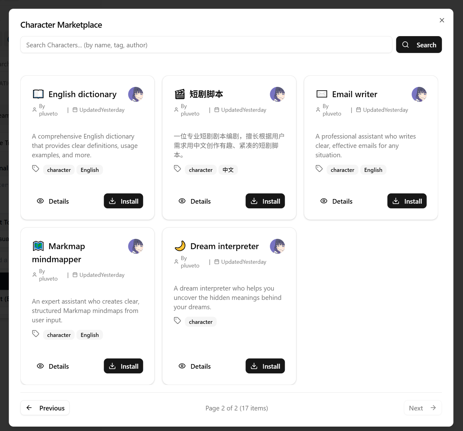 🆕 Miniapp and Character Market: Publish your presets to GitHub issues and install/reuse them in Daan with one click.
